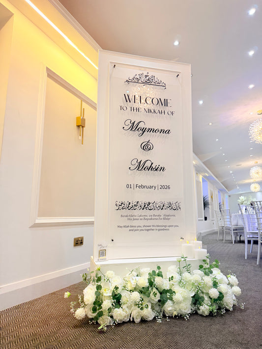 AvailableFrosted Draped Welcome Sign Hire